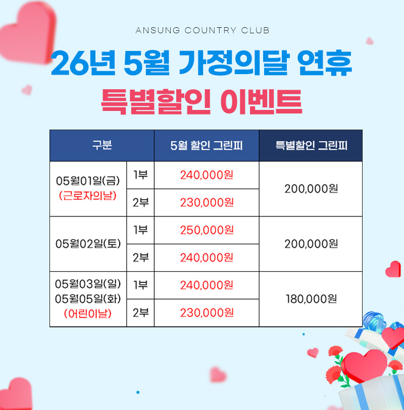 26년 5월 가정의달 연휴 특별할인 이벤트 | 공지